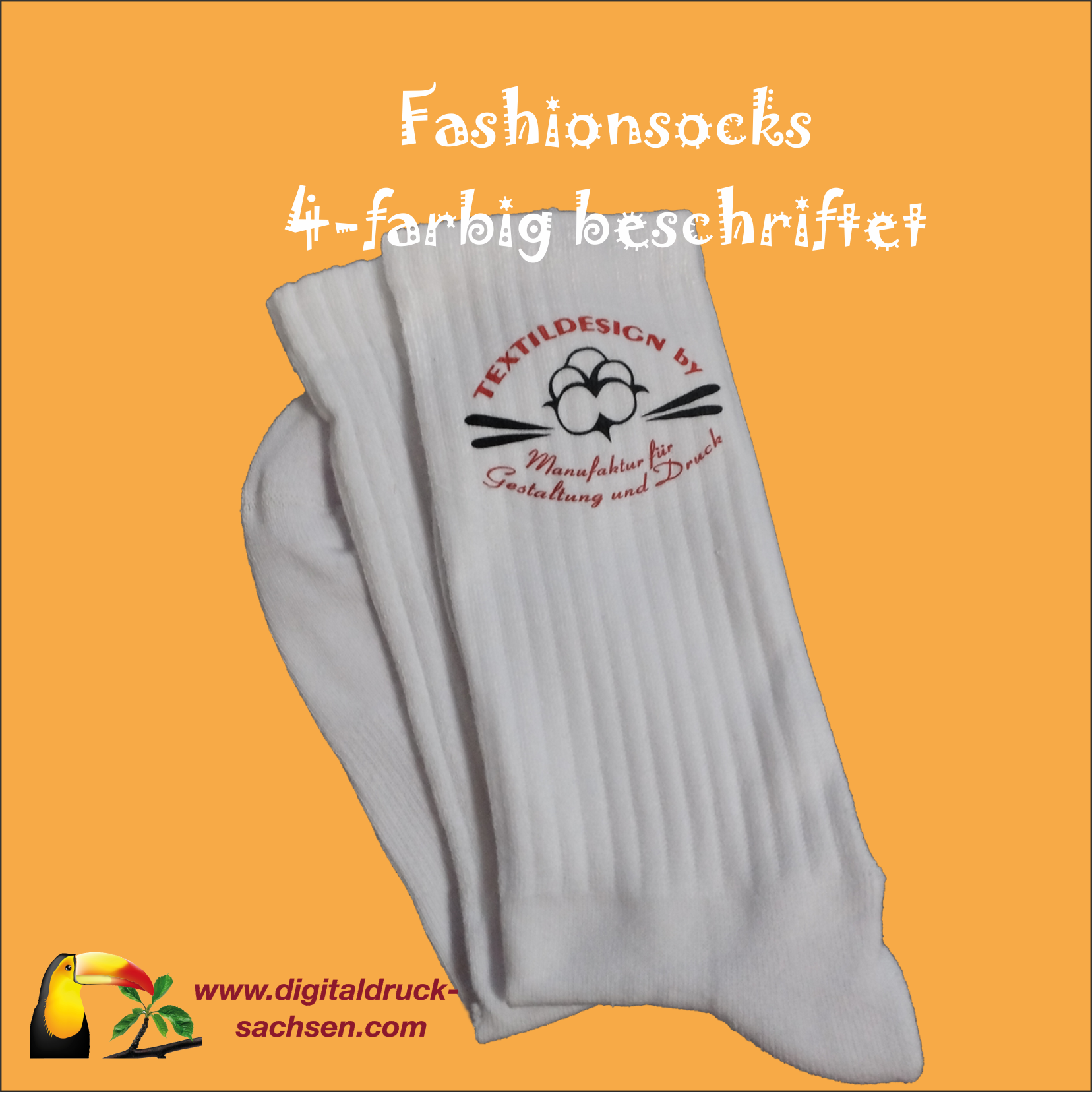 Fashionsocks für Geschäft und Freizeit beschriftet mit Logo, Text, Bild