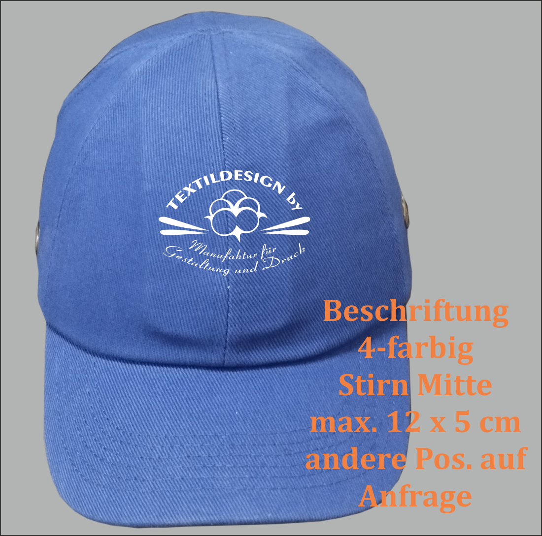 Senden Sie uns bitte Ihre Druckdaten an manu@buchdruck-digital.de Größe: Cap Stirne ca. 10 x 5 cm