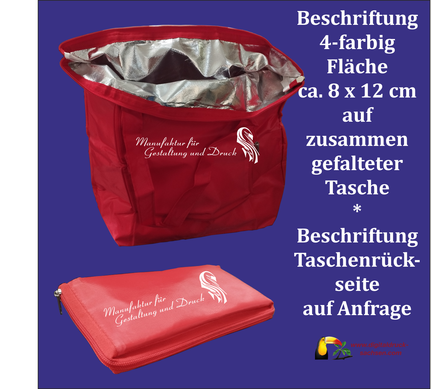 Isoliermaterial: Aluminiumfolie. Füllmenge ca. 13 Liter Senden Sie uns bitte Ihre Druckdaten an manu@buchdruck-digital.de Größe: ensprechend des gewünschten Druckes