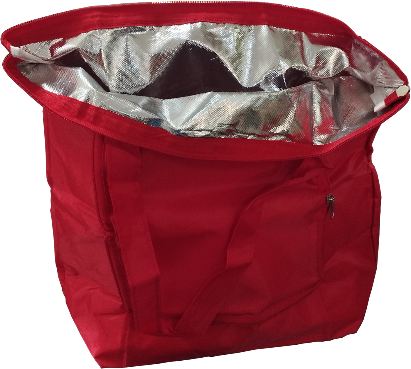 faltbare Kühltasche mit Aluminiumfolie innen. Taschenmaterial Polyester.